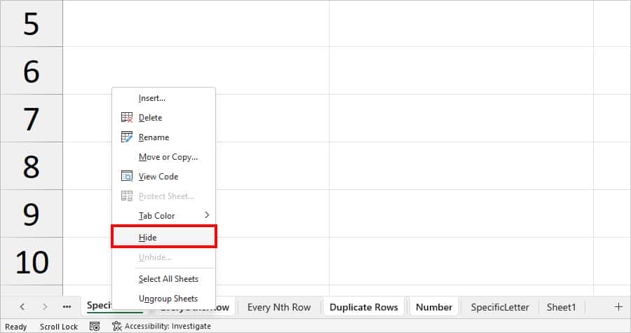(रो और कॉलम को हाईड/अनहाईड करना)