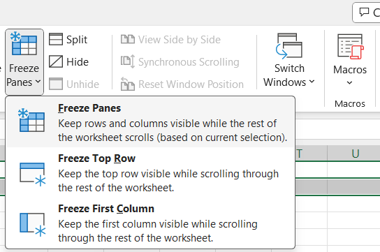 Step 1: On the View tab, in the Window group, click Freeze Panes.