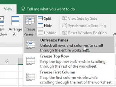 Step 2: Click Unfreeze Panes. Result: Unlock all rows and columns to scroll through the entire worksheet.